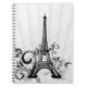 Ein phantastisches neues Produkt aus Zazzle! Dieses Notizbuch würde ein großartiges Reisejournal, Tagebuch oder eine Million anderer Zwecke machen. Super Geschenk für viele Anlässe. Das Design ist in Schwarz-Weiß gehalten, ein wenig schmuck. Im Vordergrund stehen blumengeschmückte Wirbel, Spritzer und ein Schmetterling mit dem Eiffelturm stehend. Zimmer mit Ihrem Namen, möglichen Reisedaten oder einem kleinen Angebot. Sie entscheiden.