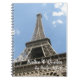 Eine Zeitschrift für Notizen & Zitate, Memoiren einer geliebten Pariser Reise, oder so gut wie alles, was Ihr Herz begehrt! Mit einem Foto des berühmten Eiffelturms, Paris, Frankreich, das aus einem nahegelegenen Garten eingefangen wurde.