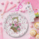 Ideal für thematische Feiern, Geburtstage, Bastille-Tag, etc. Passende Papiertassen vorhanden. 9" Rundpapier P. Rosa Eiffelturm mit Vintagem Bouquet in der Mitte.