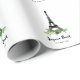 Dieses elegante Packpapier sagt "Joyeux Noël" in der französischen schwarzen modernen Typografie, zusammen mit einem Bild des Eiffelturms, der durch grüne Weihnachtskiefernniederlassungen und Kiefernkegel umgeben wird. Personifizieren Sie mit Ihrem Namen. Wir haben etwas Kunst von LABFcreations verwendet.