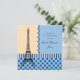 Elegante und schicke französische Themeneinladung. Der Eiffelturm ist in einem blauen und cremefarbenen Hintergrund gezeichnet. Die Streifen und die Polka-Punkte-Muster verleihen diesem Design einen modernen Look. Hier finden Sie passende Produkte.