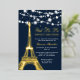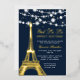 Ein modernes, elegantes und glamouröses 16 . Geburtstag mit einem handgezeichneten vergoldeten Glitzer im französischen Paris-Stil Eiffelturm mit Glitzern aus Gold, weißen Saitenleuchten auf einem bearbeitbaren dunkelmarineblauen Hintergrund mit Goldfolie.
