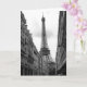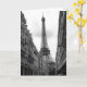 Grußkarte, die ein Foto einer Pariser Straße und des Eiffel-Turms kennzeichnet.