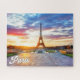 Dieses landschaftliche Puzzle mit Puzzleteil zeigt das Bild des Eiffelturms in Paris, Frankreich, im frühen Abend. Bitte passen Sie alle verfügbaren Optionen an, wie Sie möchten.