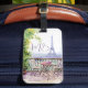 Im Watercolor Eiffel Tower Paris French Cafe Personalisiert Monogram Luggage Tags finden Sie einen französisch-französischen Café-Sitzplatz mit Paris und den Eiffelturm im Hintergrund. Erstellt von Evco Studio www.zazzle.com/store/evcostudio
