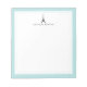 Fügen Sie Ihrem Schreibtisch eine Touch Paris-Stil hinzu! Einfach und schick präsentiert sich unser personalisiertes Memo Notizblock mit Ihrem Namen oder Monogramm und einer kleinen, handgezeichneten Eiffelturm-Silhouette in Schwarz, gerahmt durch einen pastellgrünen Rand.