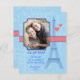 Moderne und romantische Save the Date Fotokarte. Der Eiffelturm mit zwei Herzen und einem Muster-Hintergrund. Blau und helle Korallenfarben. Fügen Sie Ihr eigenes Bild und Text hinzu. Ideal für Hochzeiten in Urlaubsort, Reisende oder Paare mit unterschiedlichem Kulturhintergrund.