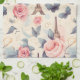 Küchenhandtuch mit elegantem Muster. Rosa Rosen, blauen Schmetterlinge und ein Eiffelturm. Ein französisches Motivmuster.