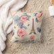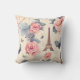 Ein Kissen mit elegantem Muster. Rosa Rosen, blauen Schmetterlinge und ein Eiffelturm. Ein französisches Motivmuster.