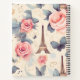 Spiralheft mit elegantem Muster. Rosa Rosen, blauen Schmetterlinge und ein Eiffelturm. Ein französisches Motivmuster.