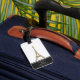Ein Zeichnen des Eiffel-Turms, in der Bronze ist auf einem weißen Hintergrund. Ist unten das Wort Paris, das in Weiß auf eine schwarze untere Grenze geschrieben wird, die mit einem dünnen grauen Streifen überstiegen wird. Die Rückseite wiederholt das Bild und die Grenze aber ersetzt Ihr Info. Fügen Sie einfach Ihre Kontaktinformationen als bevorzugte, falls Ihr Gepäck verloren ist, oder Löschungsbenennung hinzu, wenn Sie gebraucht werden. Behalten Sie, wie ist oder die vordere Benennung kann geändert werden und die Schriftartgröße, die durch die Anwendung der Zahlauswahl verringert wird. Das berühmte Monument, das in Paris gelegen ist, Frankreich ist eine der anerkanntesten Sehenswürdigkeiten in der Welt.