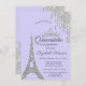 Eiffelturm, Silberne Tropfen Lavander Quinceañera Einladung