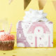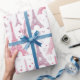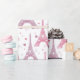 Eiffeltürme in rosa und lila mit handgezeichnet Stilherzen in einem sich wiederholenden Muster.
