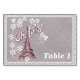 Diese Tischnummer für Ihre Veranstaltungen, Hochzeiten und Party ist grau mit einer extravaganten weißen Grenze und einer Abbildung in tiefbordeauxrot des Eiffelturms in Frankreich, umgeben von weißen, dunklen Blume und dem Text Oh, Paris! Passen Sie Ihre Tischnummer mit der Vorlage an.