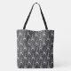Große, überdruckte, gebürstete Tasche aus Polyester mit einem Bild von weißen Eiffeltürmen und weißen Blume auf schwarz. Sehen Sie sich die gesamte Kollektion des Cancan Tote Bags in den SPEZIELLEN TOUCHS an. | Abschnitt Gastgeschenke.