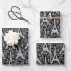 Eiffeltürme und Blume Schwarz Geschenkpapier Set