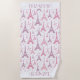 Eiffeltürme illustriert in Rosa und lila mit handgezeichnet Stilherzen in einem sich wiederholenden Muster. Personalisieren Sie Ihre Nachricht mit Ihrem Namen oder Ihrer Nachricht im lila Schriftart.