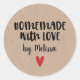 Ein personalisierter Aufkleber "hausgemacht mit Liebe" auf kraftfarbenem Hintergrund. Machen Sie es Ihren, indem Sie Ihren eigenen Namen hinzufügen. Eine hübsche Touch für alle Ihre handgefertigten Geschenke. Entworfen für Sie von BlackBerry Boulevard.