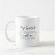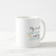 Fun coffee oder Orangensaft Tasse für Grampen mit niedlich Mein Bester Segen nennen Sie mich Oma Text in einem eleganten Vintagen hellpastellfarbenen Himmel blaue Typografie-Skript-Schriftart, mit hübschem Lorbeer verlassen Äste. Mit der Option, um mit dem Namen der Großmutter oder dem Lieblingspitznamen ihrer Enkel zu personalisieren und den Text anzupassen.