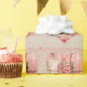 Geschenkpackung mit einer Not leidenden Hitze über einer Hördusche. Anpassbare Hintergrundfarbe