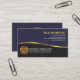Ein exquisites Design mit einer goldenen Imitat-Welle, die auf einer eleganten, blauen und grauen Weite reitet. An der unteren links Ecke befindet sich ein Imitat-Logo mit dem Firmennamen und der Art der angebotenen Dienstleistungen ; Ändern Sie diese in Anzug Ihrer geschäftlichen Anforderungen. Nord nach oben sind Ihr Prestigename und Ihr Jobtitel, gefolgt von den Kontaktdaten.
