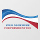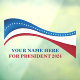 Passen Sie Ihr eigenes politisches Wahlkampffenster an, indem Sie Ihren eigenen Namen oder einen anderen Politiker unter dieser künstlerischen amerikanischen Flagge in rot, weiß und blau hinzufügen. Fügen Sie 2024 einen individuelle Name für den Präsidenten hinzu.