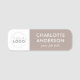 Ein einfaches und stilvolles Namensschild, personalisiert mit Ihrem Logo, Namen und Jobtitel. Dieses minimalistische und schicke Design, ist perfekt für viele verschiedene Arbeitsplätze und Berufe, einschließlich Büroangestellte, Einzelhändler, Mode-Stylist, Make-up Künstler, Schönheitssalons, Boutique Mitarbeiter, kleine Unternehmen, Einzelhandel, Konferenz oder Corporate Event. Erhältlich mit traditionellem Button oder Magnetverschluss. Bedruckte Farben: braune Taupe und Weiß.