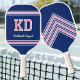 Stell dich mit einem personalisierten Pickleball-Paddel vor Gericht! Diese stilvolle Vorlage zeigt die mit Monogramm Initialen des Empfängers im klassischen Blockstil und die Worte "Pickleball Legend" in einem trendigen Script-Schriftart. Der gesamte Text kann angepasst werden, sodass Sie Ihren eigenen lustigen Titel, Spielernamen, Teamnamen, Ort oder andere kurze Phrasen hinzufügen können. Ein Vintages Retro-Design mit sportlichen Streifen auf der Vorderseite und einem kontrastreichen Zickzack Motiv auf der Rückseite. Sie können auch die Hintergrundfarbe ändern, indem Sie die Funktion 'Bearbeiten mit dem Designwerkzeug' benutzen. Kundenspezifische Paddeln machen ein schönes Geschenk für Freunde, Familie und Pickleball-Liebhaber! Farben: rosa, dunkelblau und weiß.