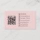 Lassen Sie sich von dieser eleganten und individuell gestaltbaren Backerkarte mit weißem und weichem rosa Hintergrund überraschen, die Sie leicht an Ihre Marke anpassen können. Fügen Sie Ihr eigenes Logo auf der Vorderseite, um Ihre Marke zu präsentieren, und personalisieren Sie die Details, um Ihren geschäftlichen Anforderungen gerecht zu werden. Auf der Rückseite der Karte befinden sich austauschbare Symbole und ein scannbarer QR-Code, der sich ideal eignet, um Ihr Menü, Ihre Dienste oder Ihre Kontaktdaten mit einem schnellen Scan zu teilen. Ideal für Bäcker, Konditorei-Koch und Bäckereibesitzer, die wollte, einen süßen und beruflichen Eindruck zu machen.