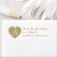 Hübsche Rücksendeadressen-Aufkleber, in Weiß gehalten, mit einem goldenen Tonherz, auf der links Seite, mit einem weißen Monogramm mit einem Buchstaben. Personalisieren Sie den goldbraunen Text und das Monogramm, um Ihre Bedürfnisse Anzug.