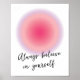 Fügen Sie Ihrem Raum eine Touch von Positivität und Charme hinzu mit diesem "Immer an sich glauben" Inspiration Zitat Design. Mit seinem eleganten Skript-Schriftart und der benutzerdefinierbaren Textoption ermöglicht Ihnen dieses Design, es wirklich zu Ihrem. Der weiche rosa bis lila, verschwommene Kreisverlauf mit einem klaren, weißen Hintergrund schafft eine traumhafte, aufregende Ästhetik, die perfekt für Jugendzimmer geeignet ist. Egal ob Sie eine Erinnerung suchen, um selbstbewusst bleibe oder wollen, um jemanden zu inspirieren - dieses vielseitige und stilvolle Design wird jeden Tag aufheitern! Auch für sofortige Downloads verfügbar.