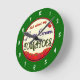 Eine lustige Gärtneruhr liest; Frag über meine Zuhause Grown Tomaten in Retrobriefen mit Vintagen Tomaten und weißen Zahlen auf grünem Hintergrund. Ein originelles Vintages Werbezeichen für Gärtner, Köche und Tomatensnobs.