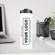Eigene weiße Firmenbezeichnung und Logo mit weißer Thermosbecher