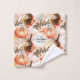 Schönes und gemütliches Aquarellmuster Herbstmuster in warmen Farben mit einem schönen reifen Kürbis, Herbstblätterung und einem köstlichen Herbstkuchen mit einem runden Orangenschatten Abzeichen und Herbstgeweih Zitat. Personalisieren Sie den Text, indem Sie ihn ändern.