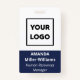 Lassen Sie Ihr Unternehmen beruflich aussehen mit individuelle Name-Abzeichen mit Ihrem Firmenlogo, Mitarbeiternamen und Jobtitel. Leicht mit langen und kurzen Namen und Positionstiteln. Passen Sie es in der Sidebar an. Das Namensschild zeigt Ihr Logo oben auf einem weißen Hintergrund. Ihr Logo kann quadratisch, kreisförmig oder in einer beliebigen Farbe sein.Der Name des Mitarbeiters erscheint auf dem unteren dritten in fett weißem Text mit dem Titel des Jobs oder dem benutzerdefinierten Text darunter in einem weißen kursiven Schriftart auf marinebasischem Hintergrund.