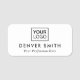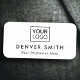 Modernes Namensschild mit Ihrem Namen, Titel und eigenem Logo. Mit dem Designwerkzeug können Sie Farben und Schriftart ändern, das Logo und andere Elemente verschieben und verändern.