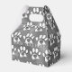 Druckmuster aus weißem Pfoten Maßgeschneiderte Gastgeschenke für Leckereien und Geschenke. Text bearbeiten, um ihn anzupassen. Grauer Aquarell. Hunde feiern Party Dekor. Ideal für Zuhause, Haustiere und Groomere.
