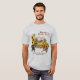 Name des landwirtschaftlichen Betriebs, T - Shirt für die Familie. Sonnenblumen T - Shirt Design mit individuellem Text. Werben Sie einen Bauernhof, Bauernmarkt oder Bauernstand. Bräunliche, gedruckte Texte an zwei Stellen anpassen. Ein schwarzer Hund, eine ferne Scheune und gelbe Sonnenblumen in einem Karren und wachsen hoch, sind alle Teil dieses auffälligen Designs. Auf einem Männer Asche graues Shirt, oder Transfer zu Frauen und / oder Kinder.