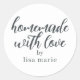 Rustikale und moderne personalisierte hausgemachte Liebe-Aufkleber verleihen stilvolle handgeschriebene Schrift-Kalligraphie auf weißem Hintergrund. Ideal für all Ihre hausgemachten Geschenke! Fügen Sie einfach Ihren Namen zum Label hinzu. Exklusiv für Sie von Happy Dolphin Studio entworfen!
