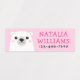 Wasserdichte Eigentumsschilder mit einem niedlichen Cartoon Eisbärenkub auf rosa (oder benutzerdefinierter) Hintergrund mit individualisierbarem Namen und Telefonnummer. Ideal für die Kennzeichnung Ihrer Sachen