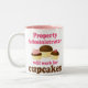 Lustige Berufs-Tasse hat Schokoladenkuchenentwurf und Eigentums-Verwalter arbeitet für Kuchenzitat. Großes Geschenk für einen Mitarbeiter oder geben als Ruhestandsgeschenk.
