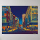 "An Abend on Broad Street" ist ein lebhaftes, farbenprächtiges Retro-Impressionistisches Print, das auf der Touch der Innenstadt von Americana Geschäfte, Drogerien und dergleichen vorfindet. Dieser Mixed-Media-Druck verfügt über reichhaltige Blues, Grüntöne und Gelb.
