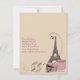 Rosa und der Eiffelturm, eine Pariser Pass-Briefmarke, ein Kompass und zwei Vintage Hutschachteln mit einem weißen Sandalen bilden den Rahmen dieser zeitgenössischen Party Einladung. Ein ideales Design für jedes Party oder für ein Party zum Thema Paris! Die Rückseite dieser Einladung hat die gleiche Grafik mit anpassbarem Text für Fahrtrichtungen oder alle zusätzlichen Informationen, die Sie angeben müssen. Sie können sogar den Text löschen, wenn Sie möchten! Viele anpassbare Text auf der Vorderseite, um Ihre Party-Informationen hinzuzufügen. Mache von unserem Mengenrabatt Gebrauch! Auch in anderen Farben erhältlich. Kopieren Sie diesen Link und fügen Sie ihn in Ihren Browser ein, um unsere vollständige Party Einladung anzuzeigen: http://www.zazzle.com/malibuitalian*/invitations