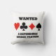 Zeigen Sie mit diesem Kopfkissen mit den vier Kartenkarten-Anzügen und dem Sprichwort "Gewollt Ein abhängiger Bridge-Partner" Ihre Brückenbrücke / Duplikat-Brückenspielerseite.