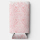 ein abstraktes, rosa und weißes Design auf weißem Selters Dosenkühler