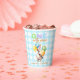 Niedlich ein albernes Goose 1. Geburtstag Thema, Junge Geburtstagsparty-Tassen mit einer niedlichen Aquarell-Baby Gans mit einem Party Hut und Ballons auf einem weichen blauen Gingham kariert Hintergrund.