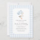 Laden Sie Freunde und Familie ein, um Ihren kleinen Geburtstag mit dieser eleganten, blauen Gingham-Gänse-Themeneinladung zu feiern.