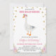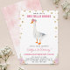 Diese niedlichen albernen Gänseeinladungen sind perfekt für jedes kleine Mädchen, das dieses Jahr einen 1. Geburtstag feiert. Das Design ist mit einer niedlichen handbemalten Aquarellgans mit rosafarbenen Glitzer- und Blumenakzenten ausgestattet. Die Vorlagenformulierung ist leicht zu personalisieren und Sie finden passende Party-Elemente in der Auflistung.