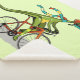Illustration eines Anabisetia Dinosauriers, der mit dem Fahrrad fährt.