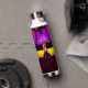 Gefallen dir die Farbtöne lila und gelb? Diese Wasserflasche hat ein gedrucktes Bild eines Acrylgemäldes von Farben, die zusammenlaufen, um eine flüssige Wirkung zu geben. Sie können diese Flasche mit Ihrem eigenen Namen personalisieren.